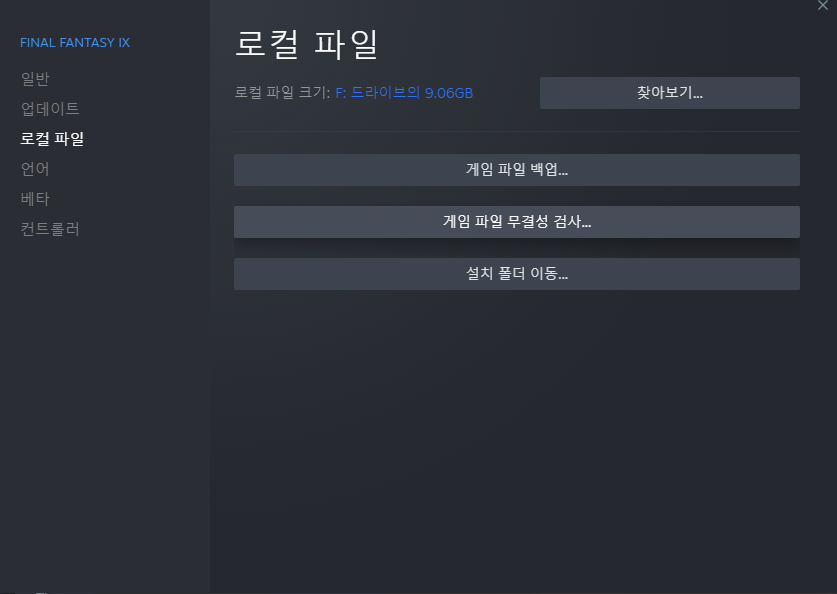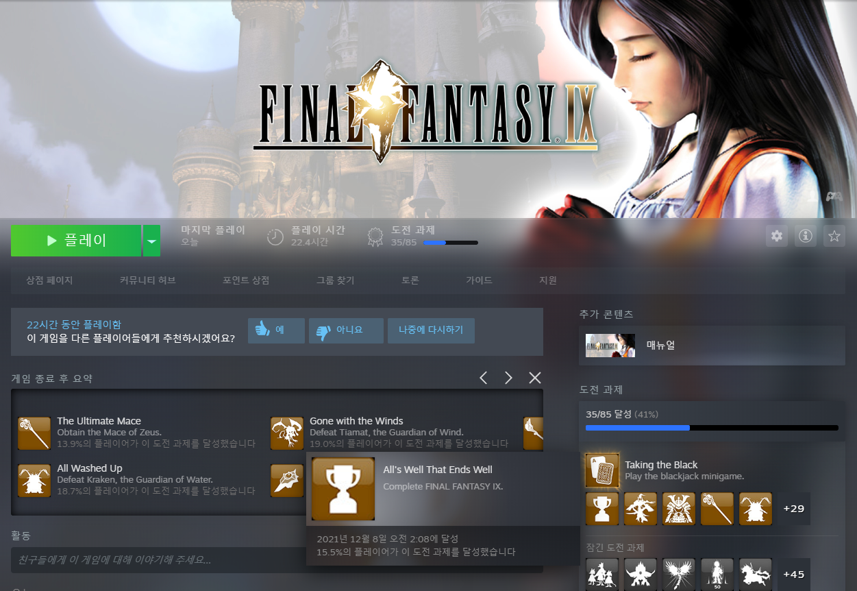 - 파이널판타지 9 게임을 스팀에서 설치합니다.