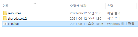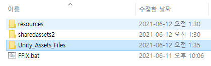 - bat파일 실행이 완료되면, 해당 폴더 안에 새로운 Unity_Assets_Files 폴더가 생성됩니다.