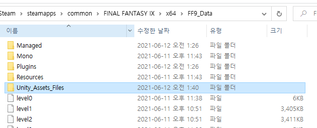 - 게임 폴더에서 64bit 윈도우라면 x64/FF9_Data 폴더로, 32bit라면 x86/FF9_Data 폴더로 이동합니다.