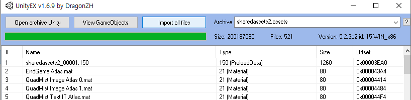 - 동일한 방식으로 sharedassets2.assets도 추출합니다.